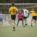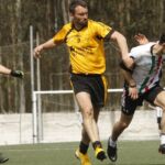 La premier match des sangliers les oppose à une équipe composée de joueurs de La Corogne et de Louvain (Belgique), autre équipe étrangère invitée. Les Liffréens rentrent parfaitement dans cette rencontre et l’emportent avec sérieux. Il était bon d’affronter cette entente au saut du lit, car elle est montée en puissance tout au long de la journée. On notera un but de renard du vétéran Paquin suite à un tir-passe de Bernier. Ce dernier, ainsi que Thoumelin par trois fois et “El Presidente” Tata d’un superbe tir lointain ont inscrit les autres points pour Liffré.