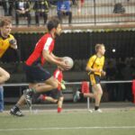 Gros morceau pour les Liffréens pour leur second match, puisqu’ils sont opposés aux locaux, champions de Galice en titre. Ceux-ci posent d’ailleurs de sérieux problèmes aux sangliers (en particulier le numéro 10 Iago Couso, ainsi que quelques autres internationaux galiciens). Avec un banc fourni, les joueurs de Compostelle font courir les jaunes et noirs. Ces derniers ont plusieurs passages à vide qui sont systématiquement sanctionnés par Estrela, qui l’emporte logiquement sans avoir tremblé.